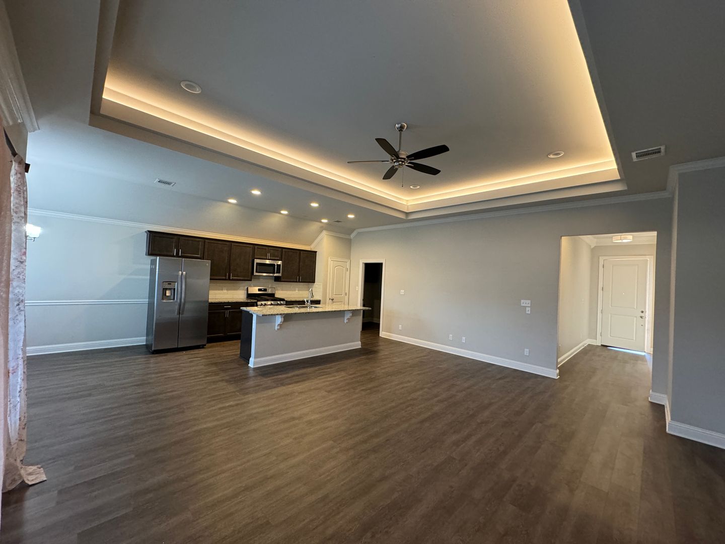 Owner offering a monthly Military discount for active military!You will love this large open floor plan!!! 3 Bedroom, 2 Bathroom home in Tuscany Crossing. Laminate wood flooring in main areas and bathrooms. Carpet in bedrooms. Trey ceilings. Refrigerator, microwave, dishwasher and gas range included. Fully fenced yard. 2 car garage.