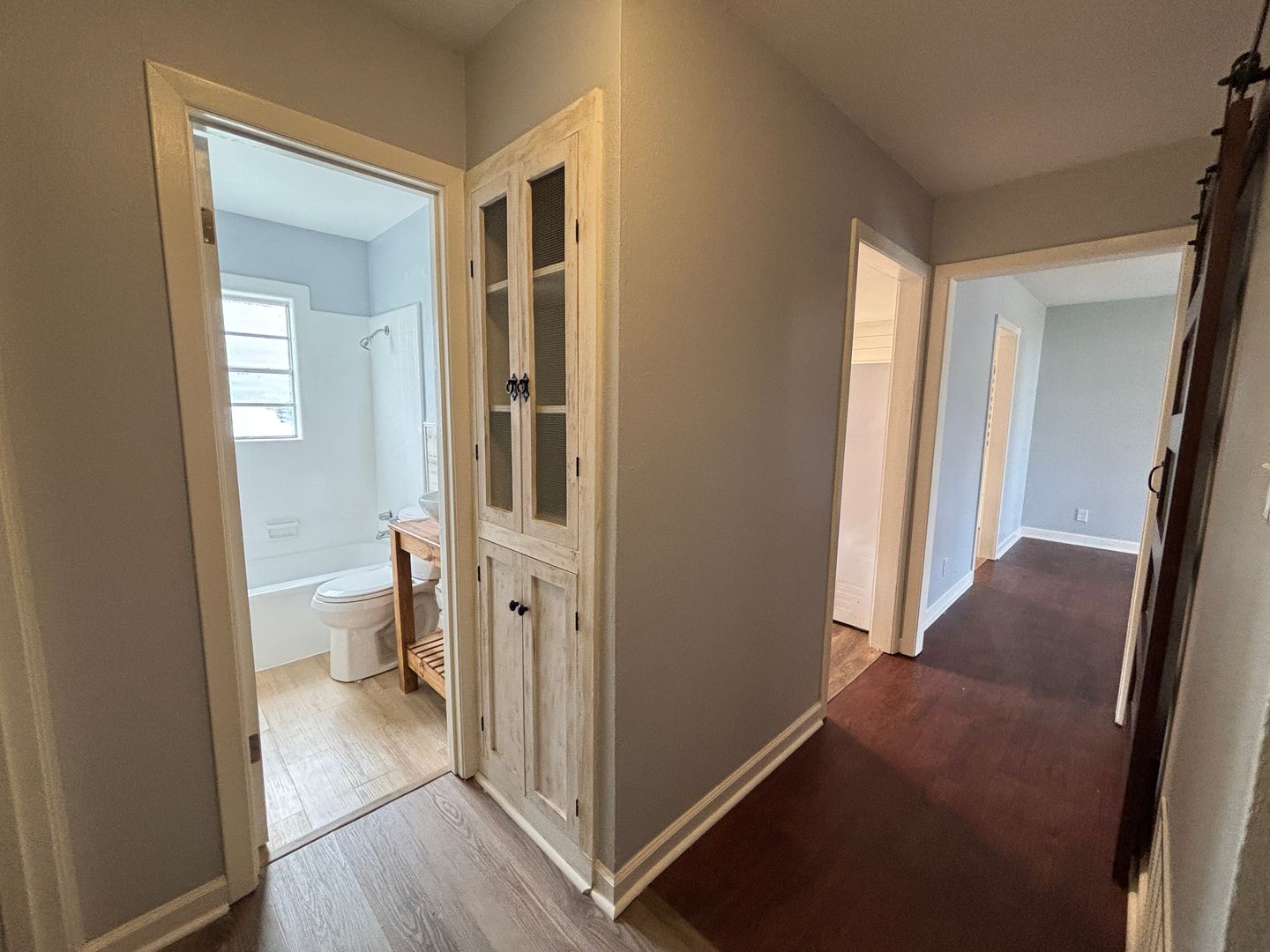 Welcome to the custom updated home near Barksdale Air Force Base, located in the vibrant Bossier City, LA. This delightful residence boasts three spacious bedrooms and a full bathroom, perfect for comfortable living. The home features a fenced yard, providing a secure outdoor space for relaxation or entertaining. Inside, you'll find a formal living area, central air and heat for year-round comfort, and a workshop for your creative projects. The flooring is a mix of plush carpet and durable laminate wood, offering both comfort and style. The home also includes a convenient one-car carport. The bathroom is equipped with a practical tub-shower combo, and the eat-in kitchen comes with a pantry for extra storage. To top it all off, there's a back patio where you can enjoy the outdoors right at home. This home combines modern amenities with a charming design, making it a perfect place to call home. Tenant pays all applicable utilities.